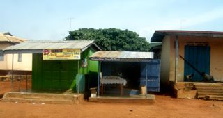 So, off we headed to school and once there, waited about an hour before leaving. Ghana time. While waiting for everyone to get ready to leave Greenie, Joey and I sang the National Anthem to have our own little 4th of July celebration. Charles, Madam Fausty, Greenie, Joey and I left the compound and headed northeast towards Lake Volta in the Volta Region. We passed through many towns, each with its own distinctive character. One had adobe houses with thatched roofs and palm trees. Another town had many, many stores selling coffins. This was surprising as many Ghanaians are superstitious about coffins – if you build it, some one needs go in it so building coffins is frowned on prior to some one actually dying. Charles explained that this particular village, which was pretty big, has the highest rate of HIV infections in the country.